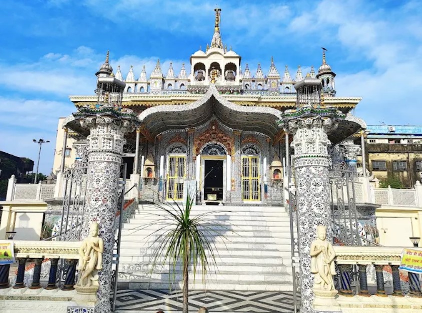 Rich Jain merchant has largely contributed towards making this city prosperous and developing it as a chief center of commerce. These Jain merchants always participated in activities of human welfare and promotion of religion. Raybhadur Baddidashji, the son of Lal Kalkadasji, under inspiration of his mother, built the present artistic temple. He was in search of a distinct ancient idol. A great man came and indicated to him that in the sanctuary in the Roshan locality of Agra; there was a wonderful idol. This idol was thus got. In the year 1867 of the Vikram era, the idol was installed under the auspices of Acharya Kalyansurishvarji. This temple is called Baddinath temple or Parshvanath temple. Every year on the fifteenth day of the bright half of the month of Kartak, a procession started from the big temple of Tulpatti and disperses here. It is very thrilling and delightful. It is believed to be the best in the whole of India. The Govt. provides all facilities. On that day, a caste - dinner is arranged in the Dadwadi in front of the temple.