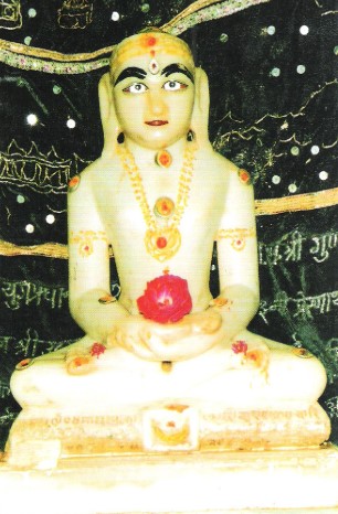 45 cm. high, white - colored idol of Bhagawan Chandraprabhu in the Padmasana Posture. (The idols of Bhagawan in the Svetambar and Digambar temples are quite similar).