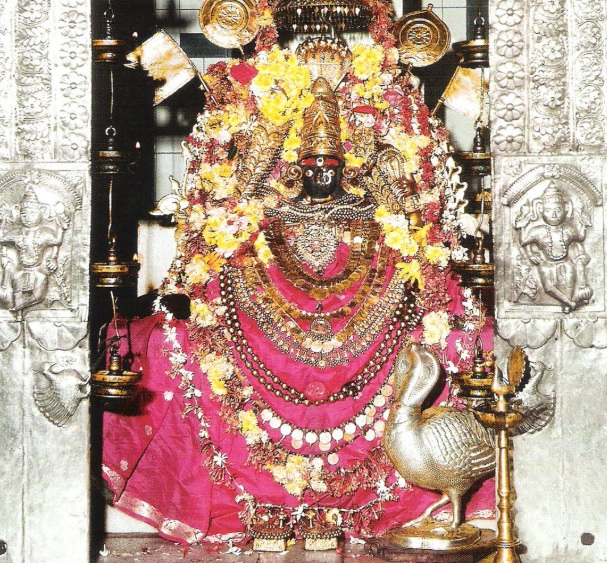 This tirth belongs to the times of Jinduttarai, the son of King Sakar of Mathura of the seventh century of the Vikram era. About this image, the story goes that once Jinadattari was carrying on horse an idol of Padmavatidevi. On the way, he halted to take rest under a tree. In a dream, he got an inspiration to set up a capital here. He, therefore, set up his capital here, built temples and got nine-jeweled idols installed. The temple of Padmavatidevi is very majestic. The like of it is not found elsewhere. On the day of the Mula constellation in the month of March every year, a joy-festival of Padmavatidevi is celebrated. Thousands of pilgrims from every nook and corner of India, come here. The more sight of Padmavatidevi fulfils the wishes of the worshippers. Here, many worshippers come and go. The atmosphere here is always like that of a fair.