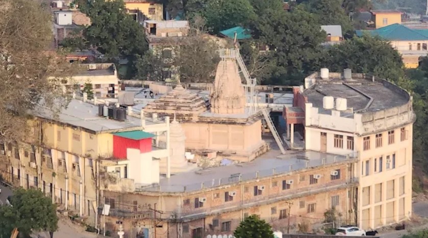 It is in an ancient fort on the hill outside the Kangada village on the confluence of the rivers Ravi and Satlaj.