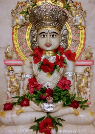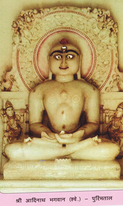 Nearly 60 cm. high, white - colored idol of Bhagawan Adishvar in Padmasana Posture. (A Svetambar Temple). Idol of Bhagawan Adishvar in the Padmasan posture. (A Digambar temple)