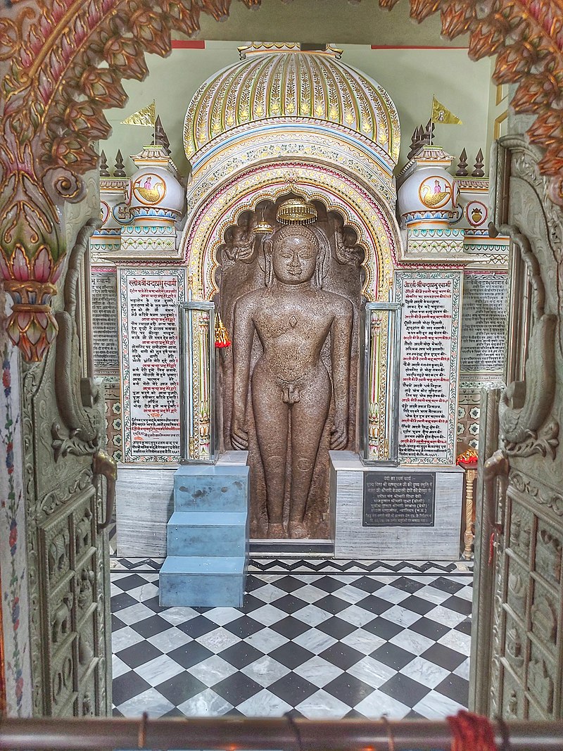 360 cm. high, black-colored idol of Bhagawan Chandraprabh Swami in the Kayotsarga posture.