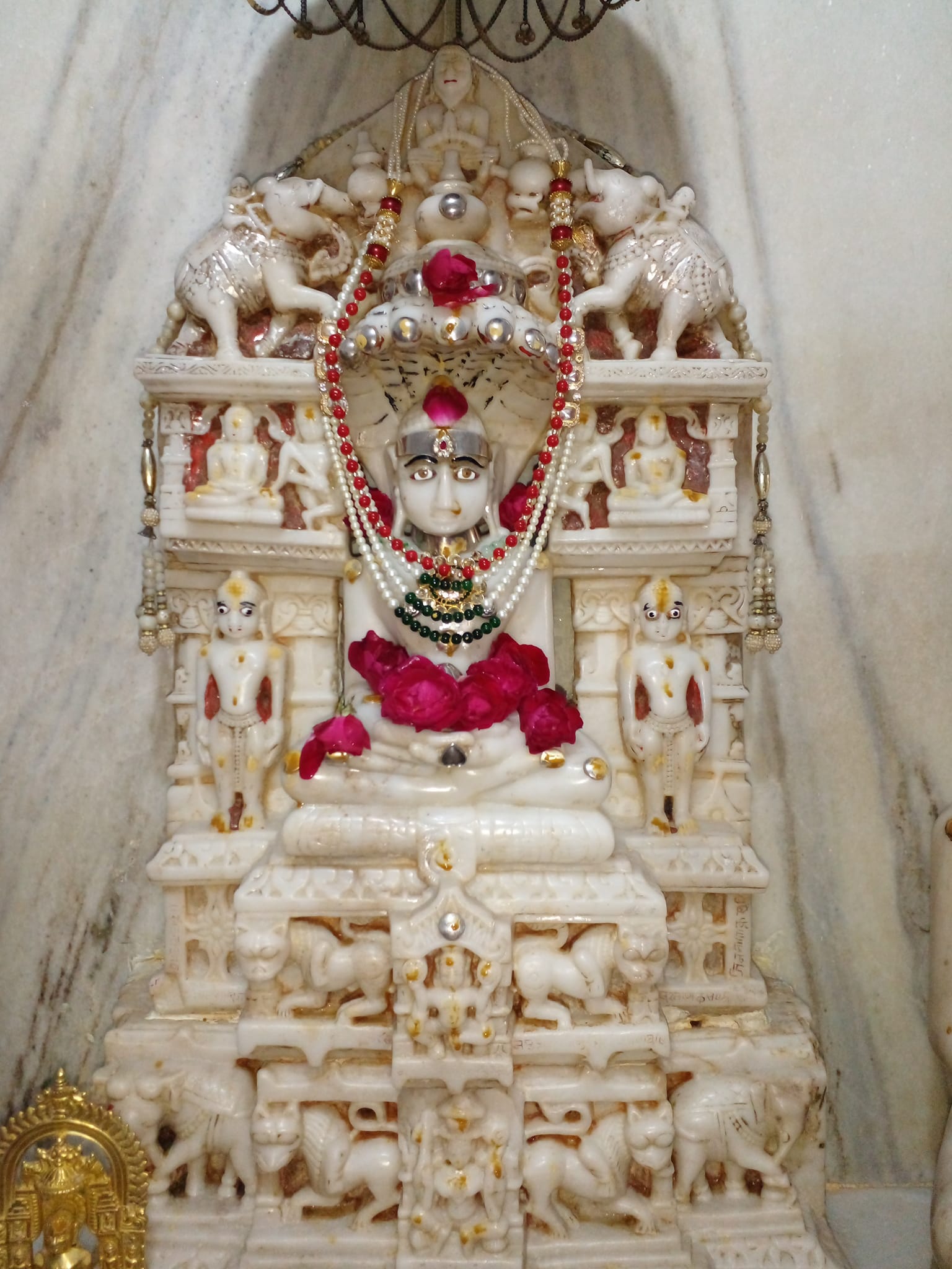 There is a story regarding the creation of this tirth. Ravana, the king of Lanka observed the vow of taking meals only after worshipping God. Once he was going in a plane to a foreign country. When it was time for lunch, he landed near Alvar to take rest. He remembered the vow of worshipping God but he had forgetten to bring the idol with him. In order to keep the vow, Mandodari made an idol of sand and installed it with life by reciting the mantra of Namaskar. Having worshipped God with devotion, Ravan and Mandodari kept their vow. By virtue of the vow and Mandodari’s chastity, the presiding deity made the idol adamantine. Thus, the idol of Parshvanathji worshipped by mandodari and Ravan began to be known as ‘Shri Ravan Parshvanath.’ This ancient temple survived till the fifteenth century. Then in the year 1654 of the Vikram era, this new temple was built and the idol was reinstalled in the year 1983 of the Vikram era. Ravan Parshvanath is mentioned in many ancient scriptures and tirthmalas written from the year 1422 to the year 1689 of the Vikram era.