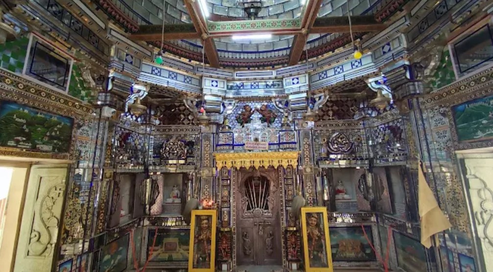 The high - built glass temple is splendid and attractive. The glass work is beautiful and attractive. The Datha tirth belongs to the Palitana group of five tirth.