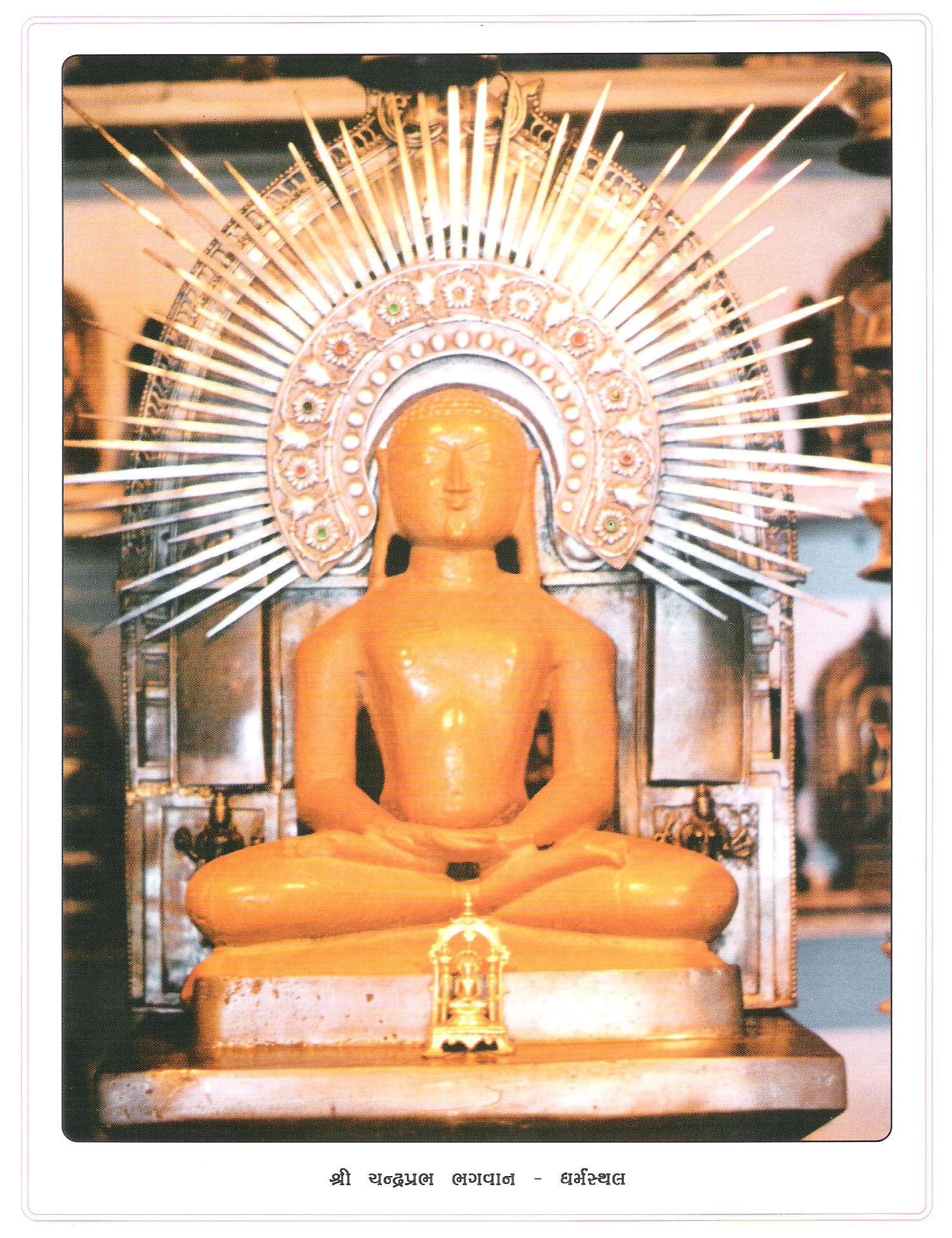 Nearly 36 cm. High red-colored idol of Bhagawan Chandraprabh in the padmasana posture.