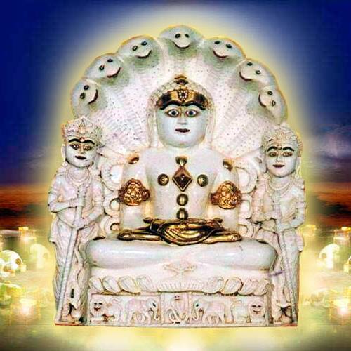 Nearly 18 cm. high, white colored idol of Bhagawan Jiravala Parshvanath in the Padmasana posture.
