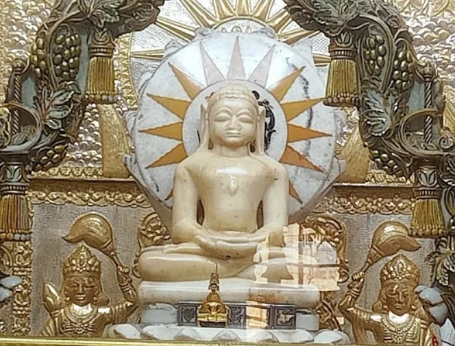 The idol of Mulnayak Padmapradh Swami appeared from the hollow of ground and, therefore, this idol is regarded to be very ancient. On the fifth day of the bright half of the month of Vaishakh in ,.the year 2001 of the Vikram era, a farmer saw this beautiful, idol while he was digging. Then he made a temple on a raised platform and seated this idol in it. The idol is very miraculous and worshippers come here in a large number. Evil spirits, mental anxiety, diseases and worldly troubles are removed by worshipping this idol. This is a miraculous idol which removes the calamities of devotees.