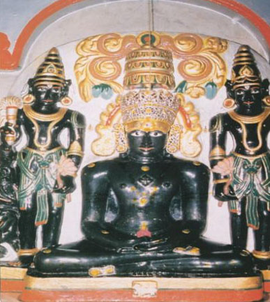 Nearly 120 cm. high, black - colored idol of Bhagawan Parshvanath in the Padmasana posture.