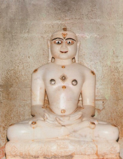 White-coloured idol of Bhagawan Mahavir Swami in the Padmasana posture.