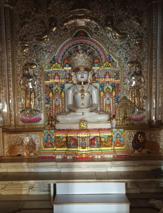 It is on the land of the Shankheshvar tirth on the main road near the town Harij. Bus service and private vehicles are available. There is a very comfortable dharmashala. There is also an upashray.