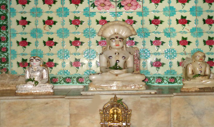 There are small temples in a garden nearby. There are in them the foot-idols of predecessors of His Holiness Mahendrasurisvarji.