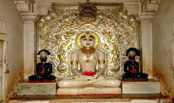 There is a reference to this village in the list of the members of the committee appointed for the annual function of Abu - Delwada in the year 1287 of the Vikram era. This temple is mentioned in the Tirthmala composed by Poet Megh in the year 1499 of the Vikram era. It seems that his temple was buried in an earthquake. The large idols of Bhagawan Parshvanath and Bhagawan Vimalnath in the Kayotsarga posture were found from the hollow of a ground near a hill outside the village. This temple was renovated and this ancient extraordinary idol was reinstalled in the year 1920 of the Vikram era. Many ruins of buildings outside the village reveal that this was a large city of many temples. Inscriptions also state that rich merchants of this place participated in many religious activities. A flag is hoisted on the thirteenth day of the bright half of the month of Magh.
