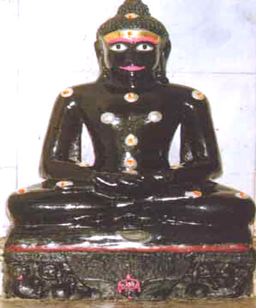 Nearly 75 Cms. High, black-colored idol of Bhagawan Neminath in the Padmasana posture. Nearly 76 cms. high, white colored idol of Bhagawan Adinath in the Padmasana posture