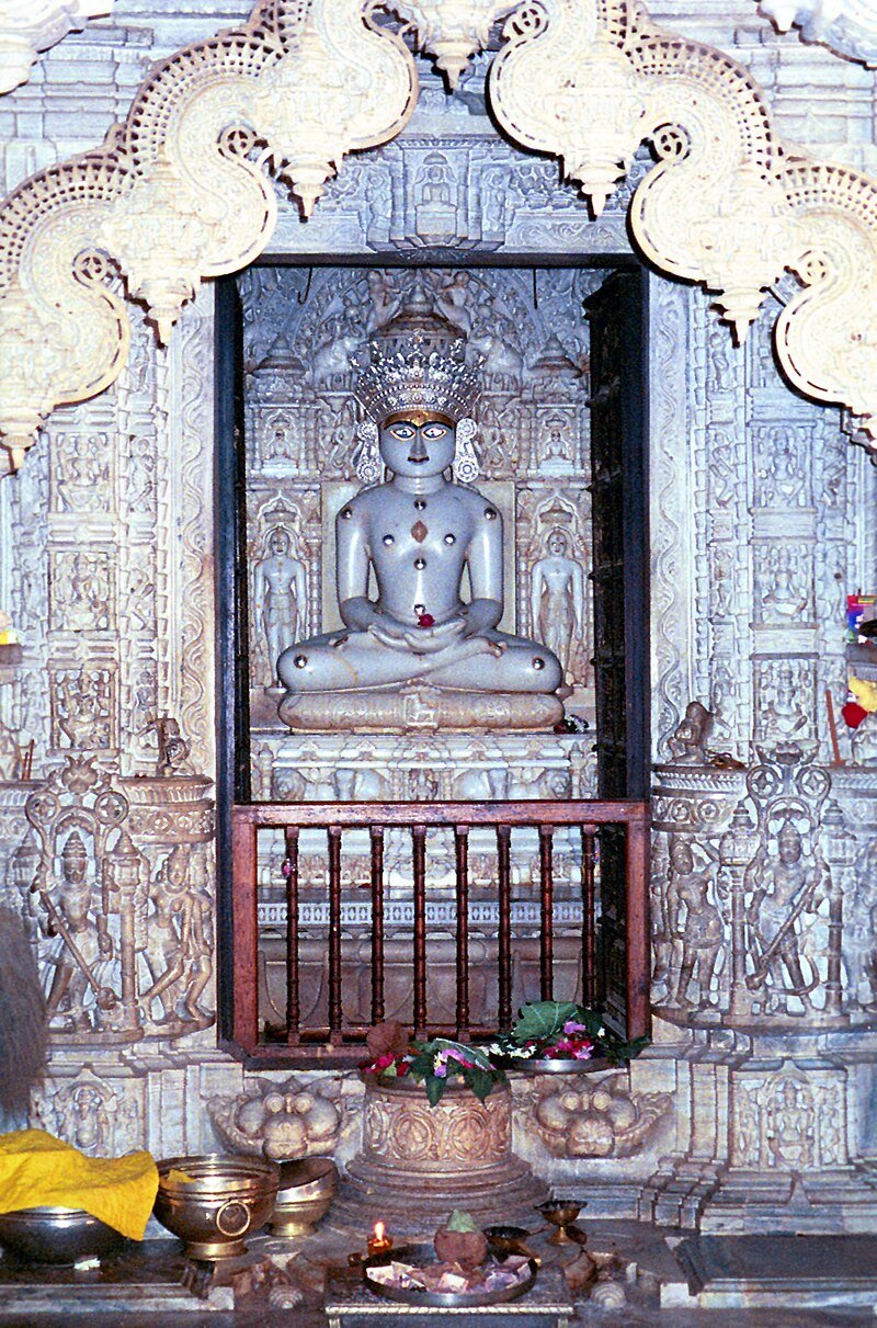 Nearly 180 cms. high, white -colored idol of Bhagawan Adishvar in the Padmasana posture.