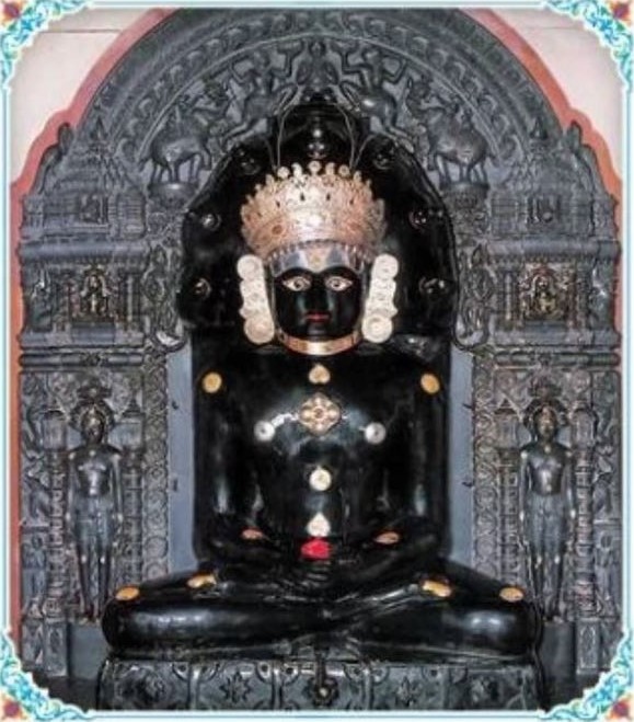165 cm high, black-colored idol of Bhagawan Parshvanath in the Padmasana posture.