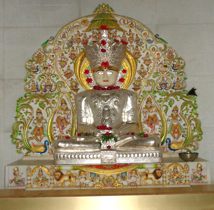 Nearly 140 cm high,white-colored idol of Bhagawan Mahavir Swami in the Padmasana posture.